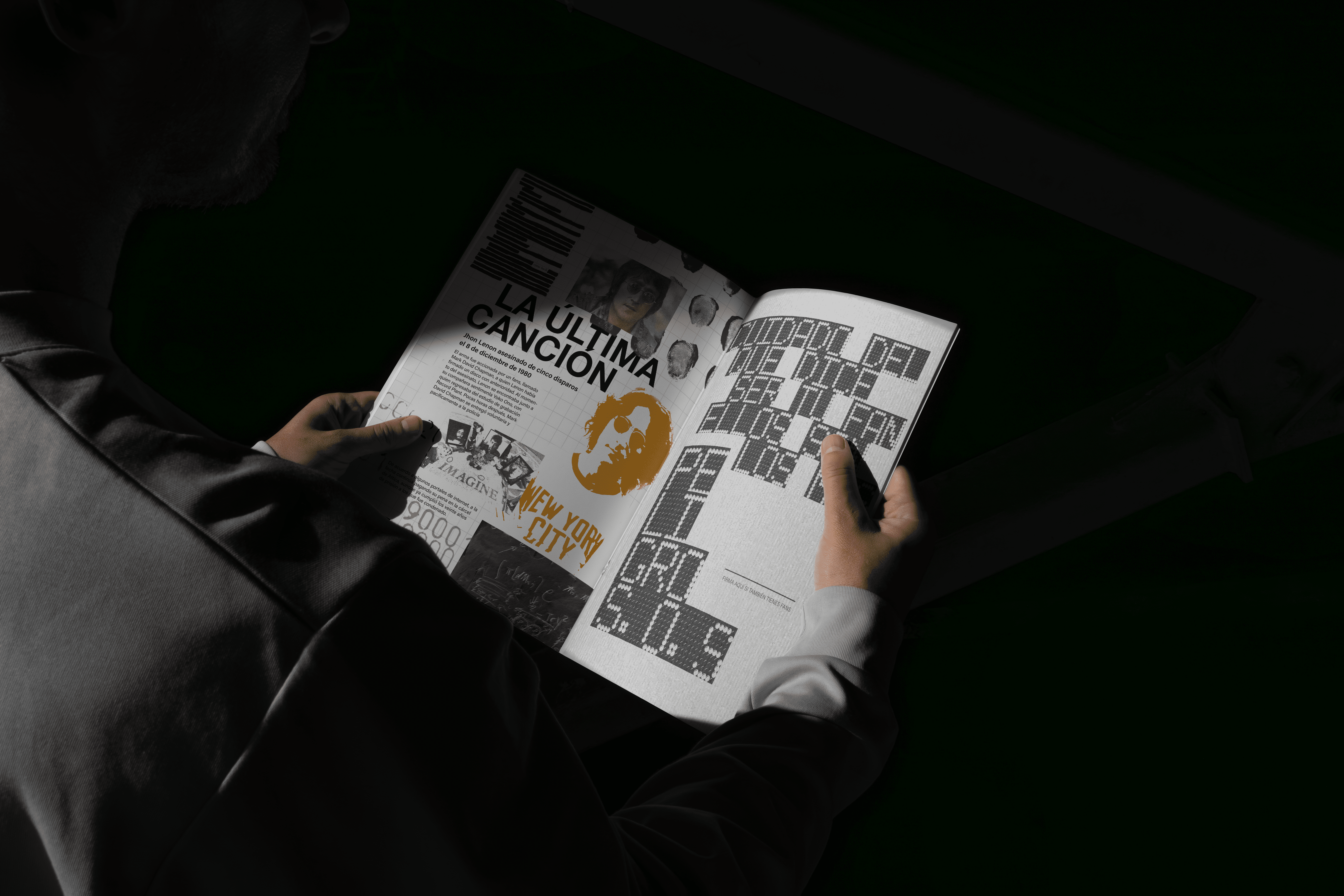 Este proyecto me conectó con mi fascinación por el cine y sus sombras. Siempre me ha intrigado lo que ocurre detrás de las cámaras, lo que no se cuenta en las alfombras rojas. SWESH me permitió explorar esa tensión entre el glamour y el crimen, entre la narrativa oficial y la verdad incómoda. Mientras diseñaba, pensaba en cómo el diseño puede ser una herramienta de investigación. Cómo una tipografía puede parecer una declaración, cómo una imagen puede funcionar como prueba